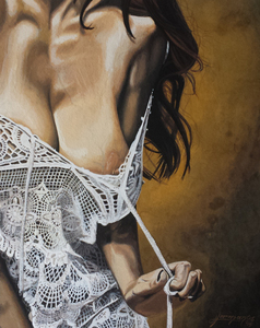 2014Eén van mijn favoriete modellen, Danni Ashe, in een wulpse pose. Grof, met paletmes opgezette achtergrond en verfijnde voorgrond met penselen.