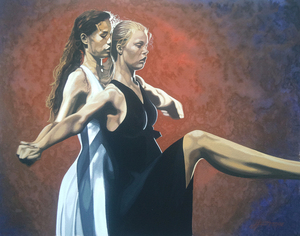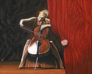 2008Lastig om in de juiste groep te plaatsen. Een weliswaar realistisch portret van de getalenteerde celliste Beata Söderberg, met toch een surrealistisch tintje door de tango-dansers en Astor Piazolla in het gordijn verwerkt.